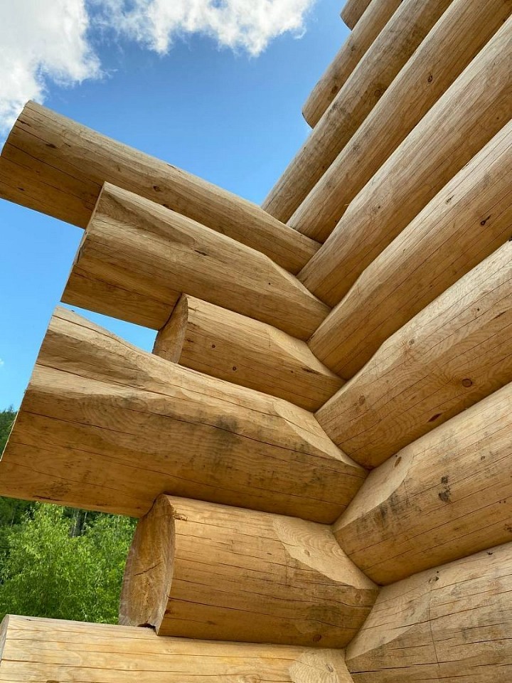 Один з найдавніших способів будівництва дерев'яних споруд є дикий тес, зрубаний вручну сокирою. Дикий зруб (дикий тес, ручний тес) - це очищені від кори стовбури дерев. Сокирою і рубанком здійснюється обстругування колод. Кожен вирубаний стовбур підлягає ретельній ручній обробці і шліфовці без додаткових механічних втручань: вирубуються пази, елементи замкових з'єднань з іншими конструктивними елементами споруди. Дерев'яні стіни встановлюються на заздалегідь підготовлений фундамент, який забезпечує достатню несучу здатність. Стіни будівлі монтуються повінцево, горизонтально укладеними колодами, кожен новий ряд називається вінець. У проміжок між колодами укладається міжвінцовий утеплювач (ми використовуємо тільки натуральні матеріали - лляне полотно, джут та ін.)